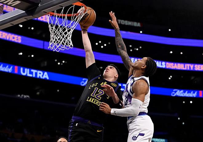 本场比赛中,湖人的替补侧翼新援杰克-拉拉维亚(Jake LaRavia)的表现还是相对不错的。拉拉维亚全场出场25分30秒,投篮10中6,三分线外5中2,罚球3中2,得到了16分4篮板2助攻1抢断的数据,还有1次犯规,正负值为+12。拉拉维亚本场比赛中又一次打出了攻守兼备的表现,他在进攻端能里能外,展现出了全面的得分能力,看起来他的特点与勒布朗-詹姆斯(LeBron James)的打法也是能够很好地兼容。拉拉维亚在防守端也是保持了很高的积极性并且起到了相当不错的效果。总体来看,拉拉维亚在本场比赛中的表现算得上是攻守兼备,他也是很好地扮演了自己的角色并且为球队的这场胜利做出了自己的贡献。
