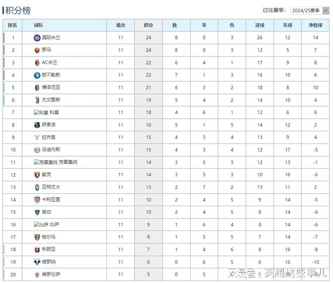 意甲最新积分榜:国际米兰豪取3连胜登顶,那不勒斯连续3场不胜!